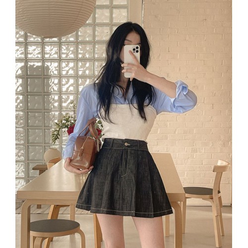 牛仔半身裙(3color)♡