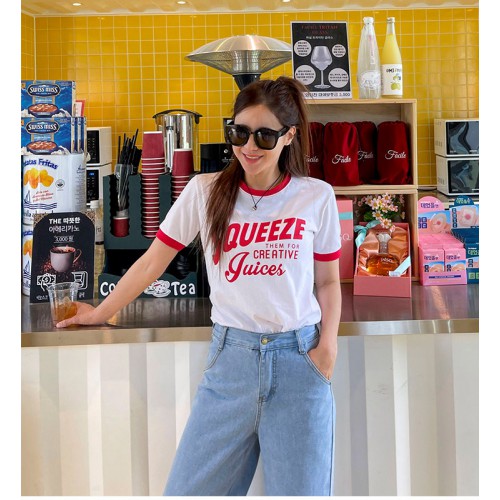 00是日推介-拼色邊印花上衣♡